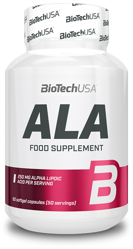 ALA - Alpha Lipoic Acid (Biotech USA) - acid alfa lipoic sub formă de capsule moi de gel care conțin 250 mg antioxidant de acid alfa lipoic.