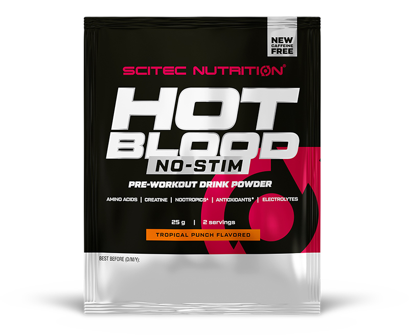 Hot Blood No-Stim (Scitec Nutrition) - Versiunea fără stimuli a lui Hot Blood, pentru persoanele cu intoleranță la cofeină. Susține corpul în timpul antrenamentelor solicitante din punct de vedere fizic sau de mare intensitate, mărește performanța în timpul eforturilor secvențiale, de scurtă durată, de mare intensitate, cum ar fi antrenamentele cu greutăți sau cardio.